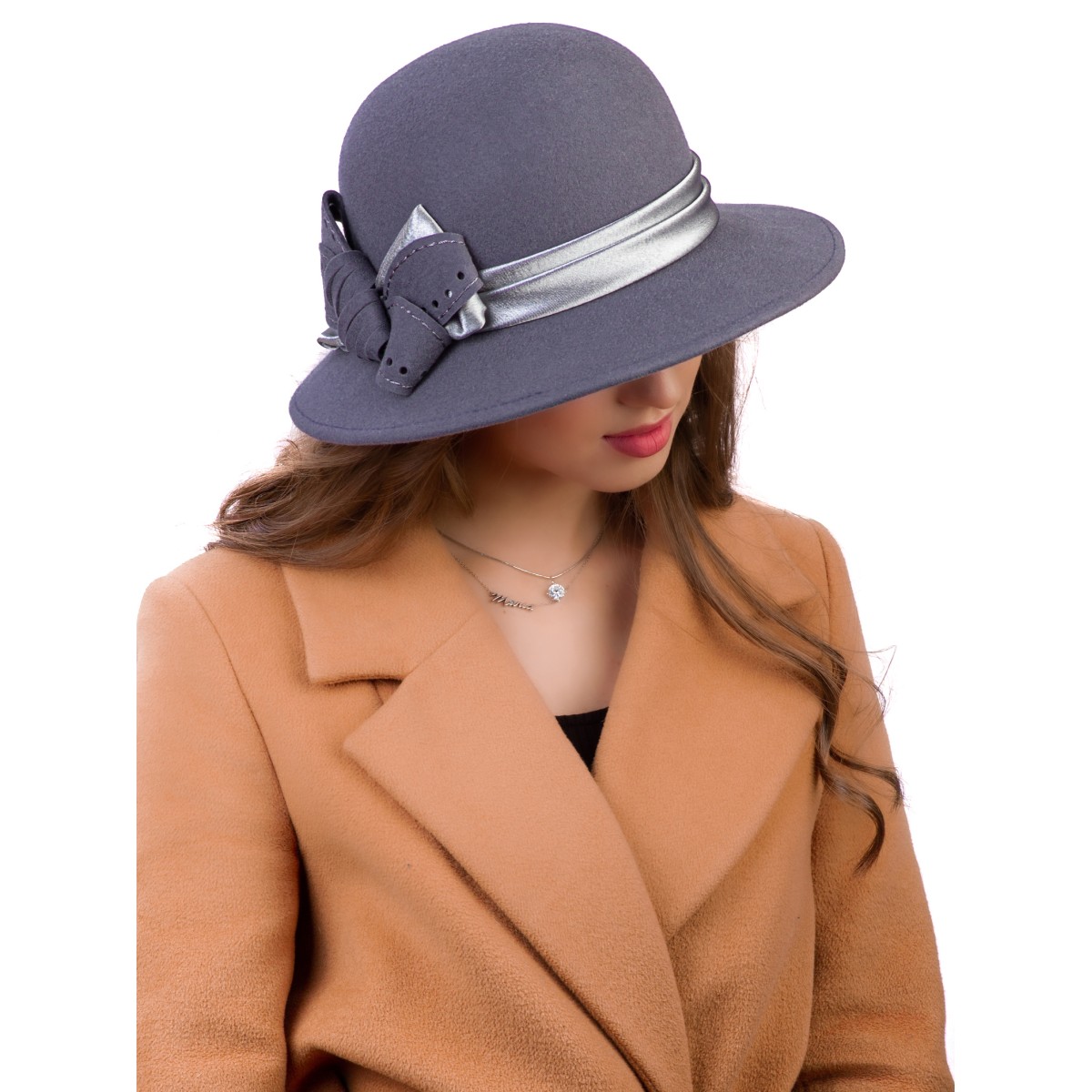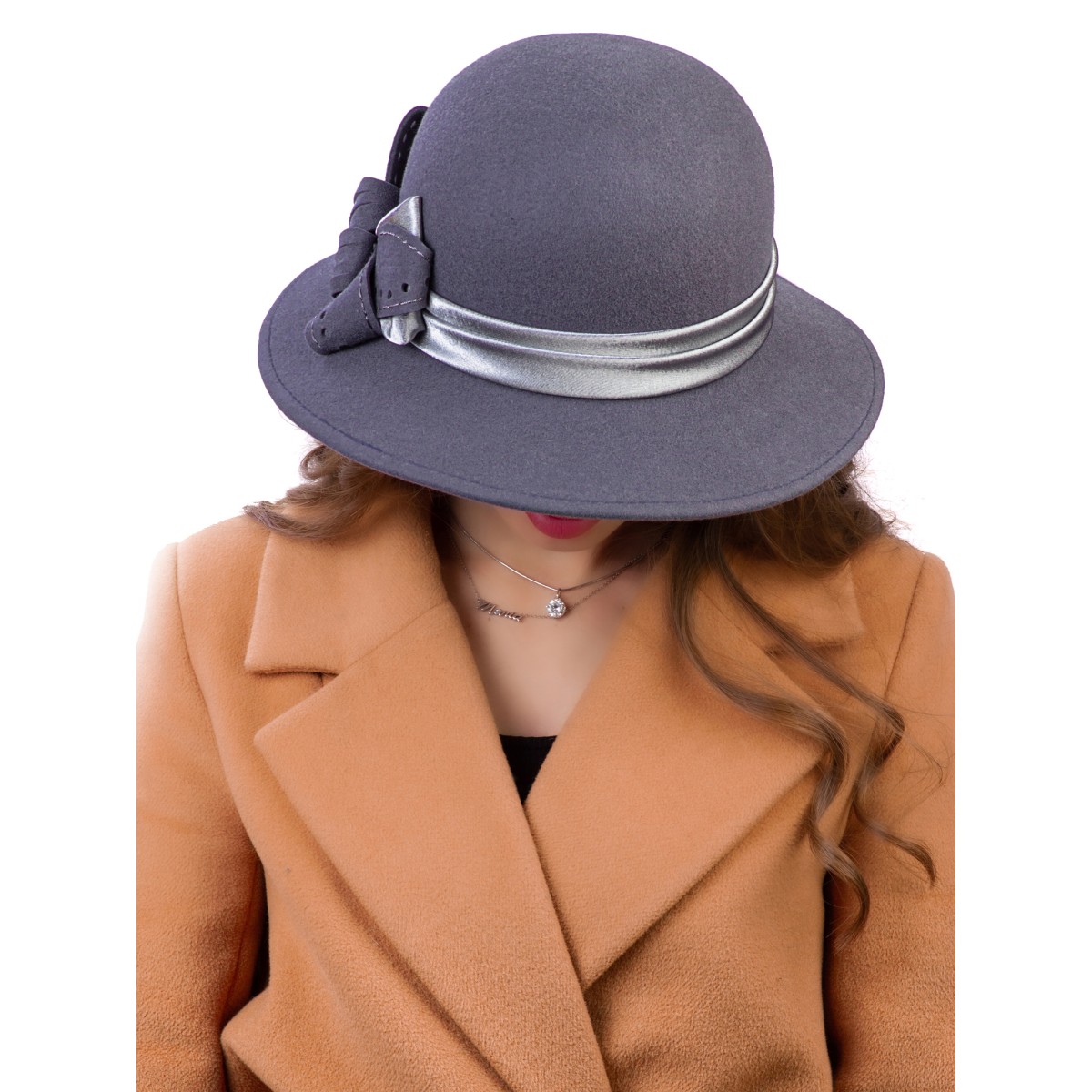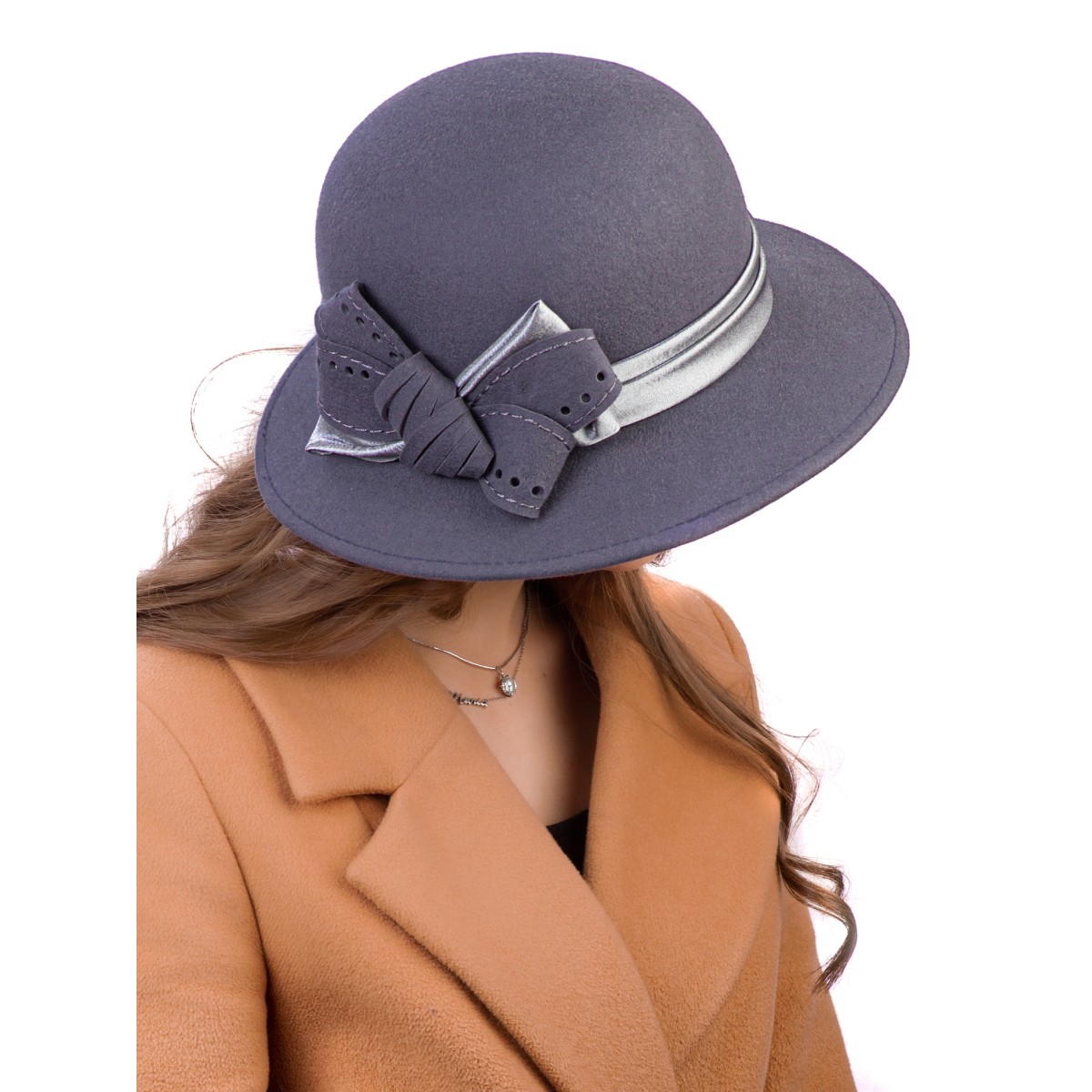 Фетровая шляпка №5 серо-голубая