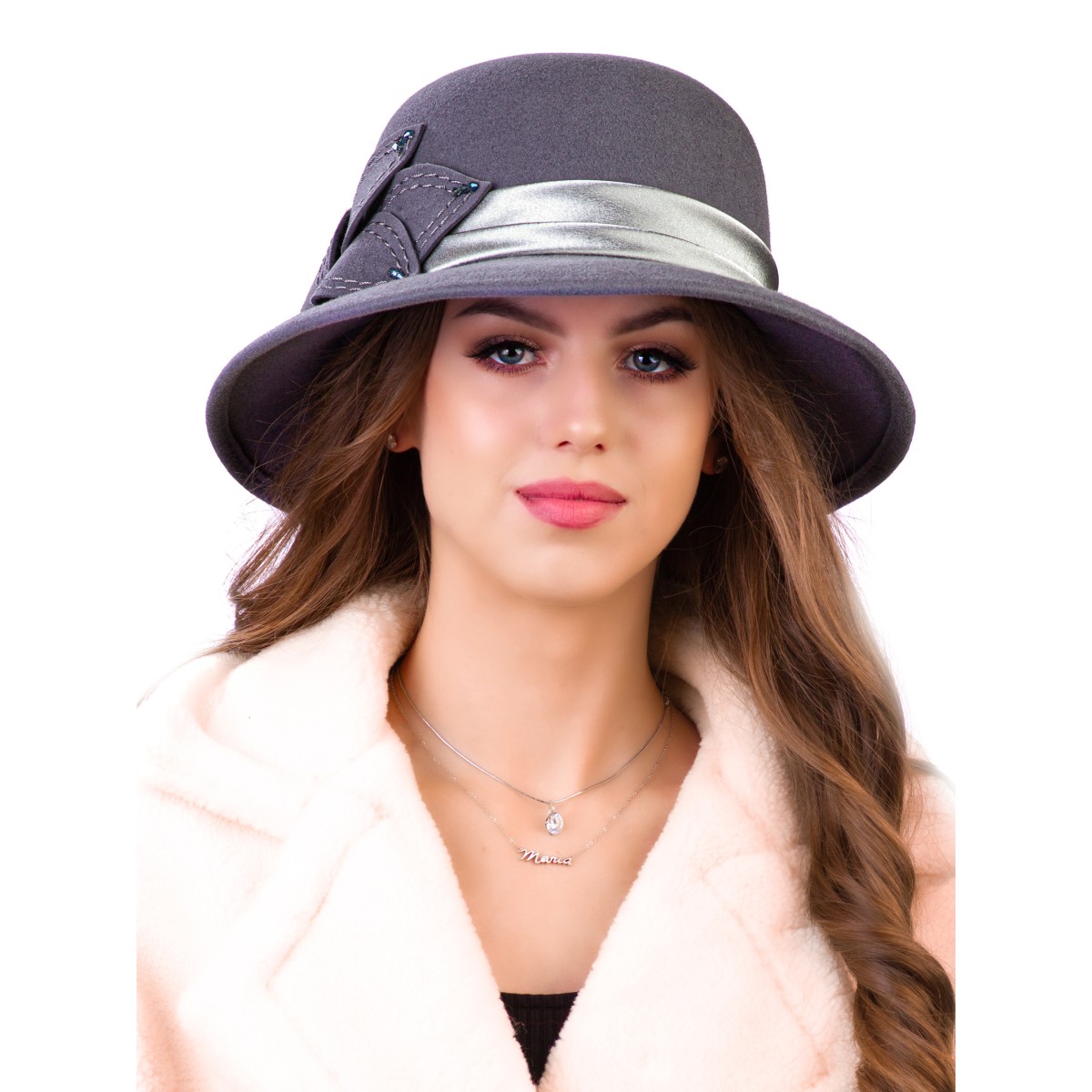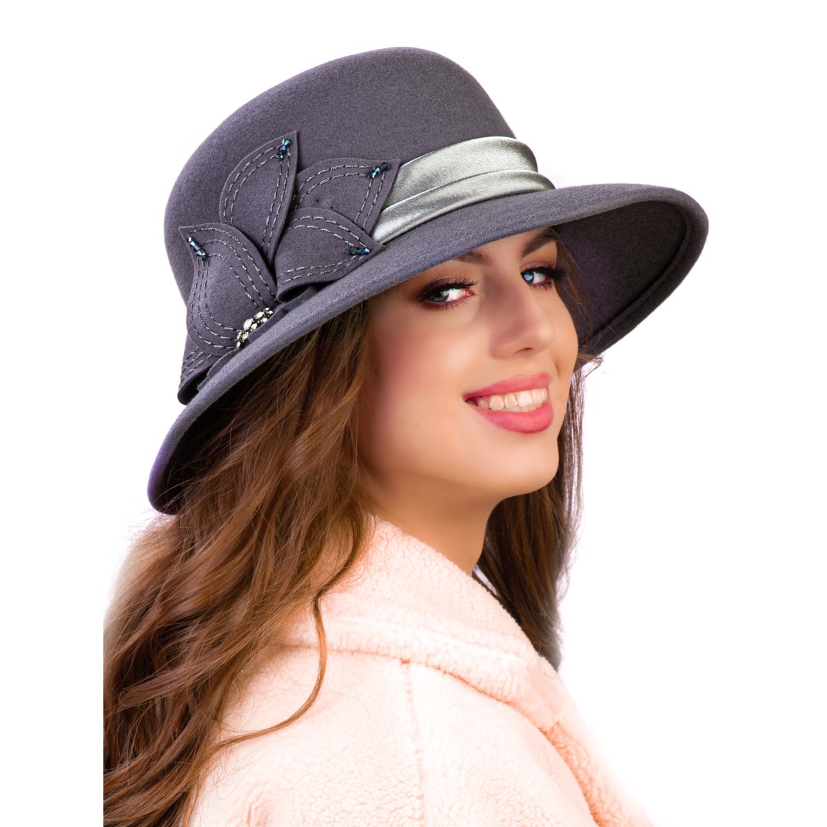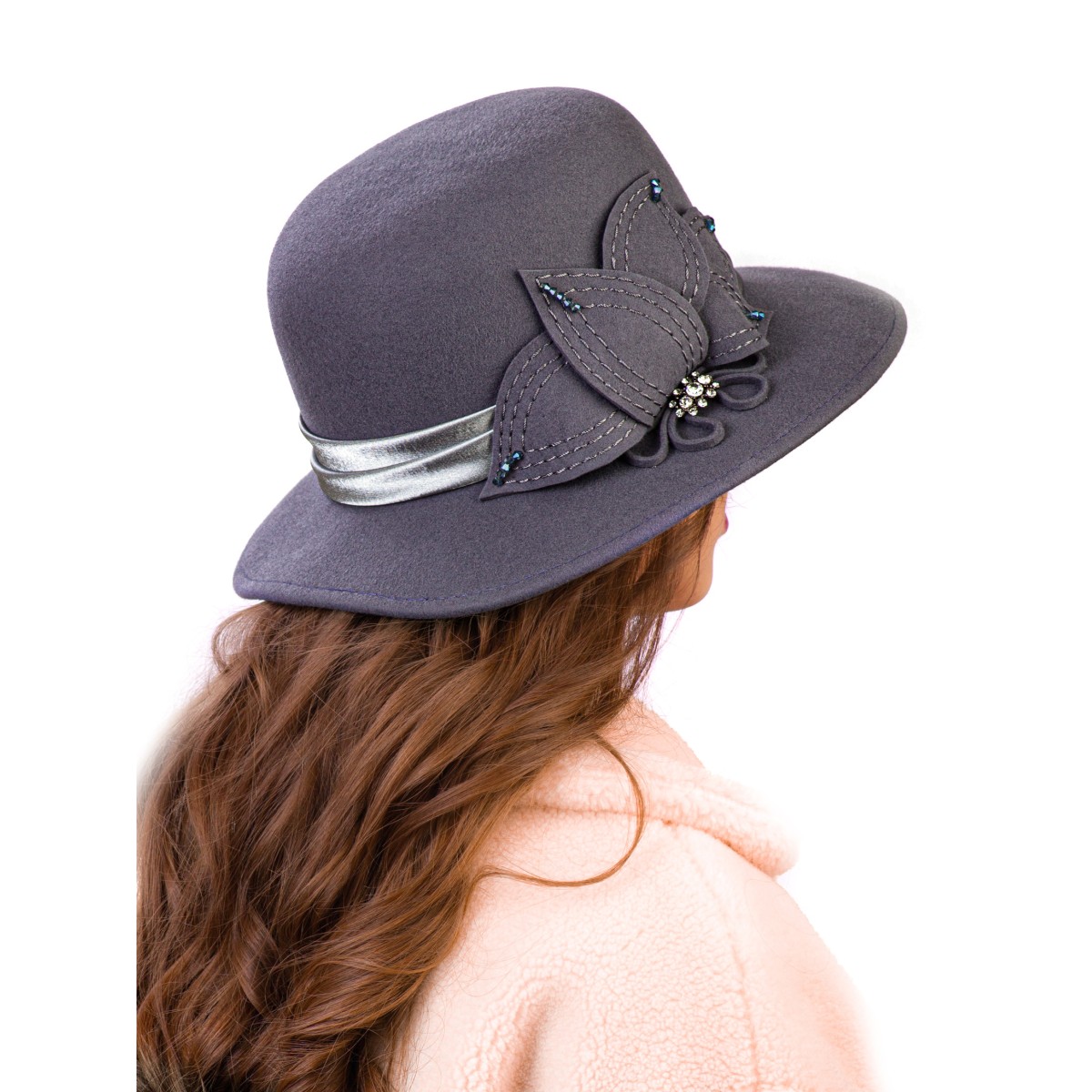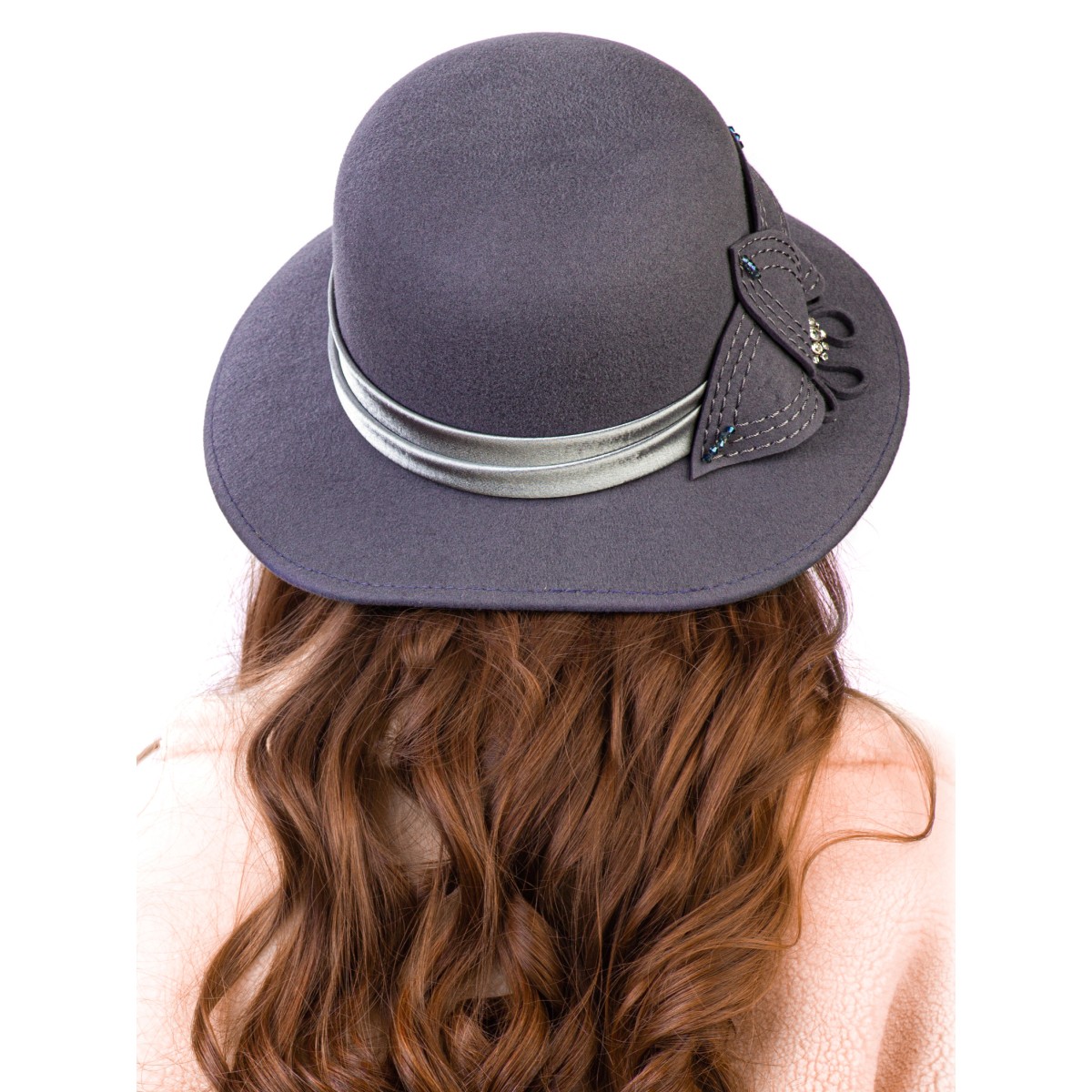 Фетровая шляпка №26 серо-голубая
