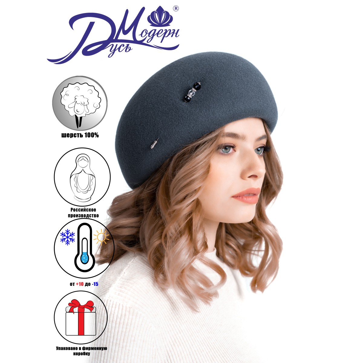 Фетровый шерстяной берет, производства фабрики "Русь Модерн", является настоящим произведением искусства. Изготовленный из нежнейшей шерсти мериносов, он обещает стать неотъемлемой частью гардероба каждой стильной женщины. Особое внимание привлекает его изысканное украшение. Внутри берета скрывается светлая тайна: вшитый колпак из вискозы обеспечивает комфорт, а трикотажный манжет, продуманно разработанный для защиты ушек от холода, позволяет удерживать тепло даже в самые морозные дни. Этот берет — не просто аксессуар, вобравший традиции и современность, предлагающая своим обладательницам не только великолепный внешний вид, но и функциональный комфорт в каждом элементе. Мы изготавливаем Ваш заказ индивидуально — до Вас головной убор никто не примерял, и на складах он не хранился. Вы можете выбрать другой цвет и стилистику украшения при заказе или по согласованию с менеджером. Мы предлагаем широкий спектр отделки, чтобы подчеркнуть Вашу индивидуальность и стиль. Для создания идеального изделия мы используем только высококачественные материалы и новейшие технологии. Наши мастера тщательно прорабатывают каждый элемент, чтобы достичь безупречности в исполнении. Ваш головной убор станет не только стильным дополнением образа, но и настоящим произведением искусства. Выбирая нас, Вы выбираете уникальность и качество. Мы стремимся к тому, чтобы каждый клиент остался доволен нашим обслуживанием и результатом.
